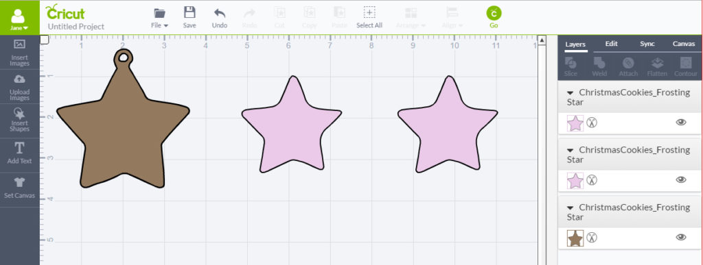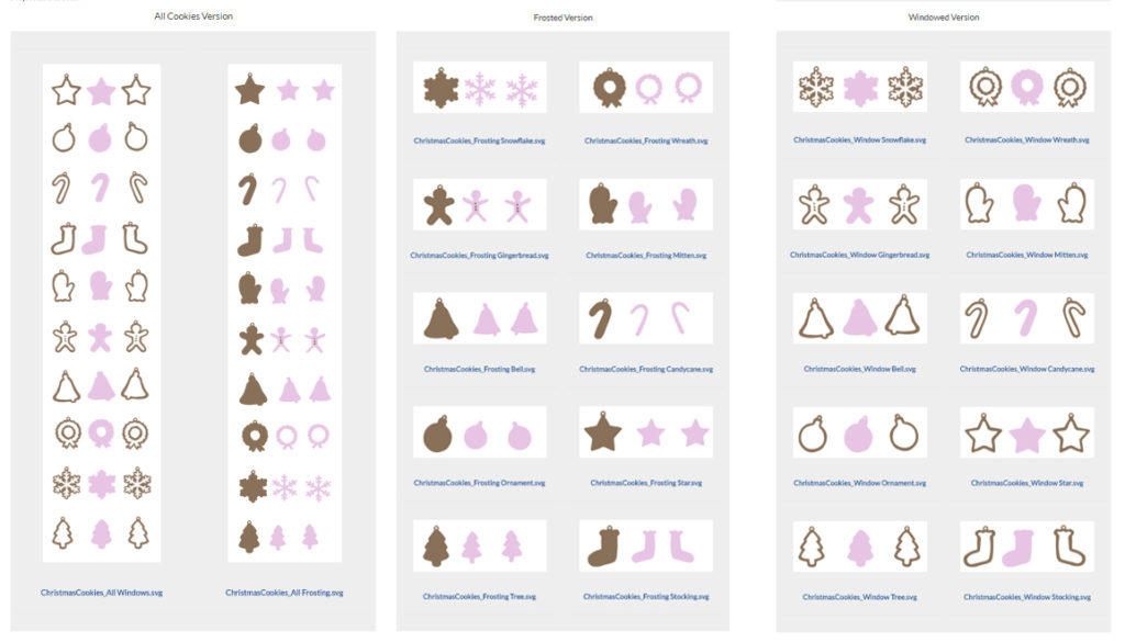 So I designed ten different Christmas Cookie SVGs in two different ways; one that has a window through it, the other that’s solid, so it’s more like a frosted cookie.