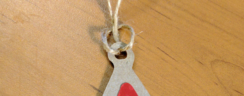 I used a knot that is a little annoying to make since you have to pull the whole strand through every time for a new knot, but this way the cookies will hang facing forward instead of sideways.
